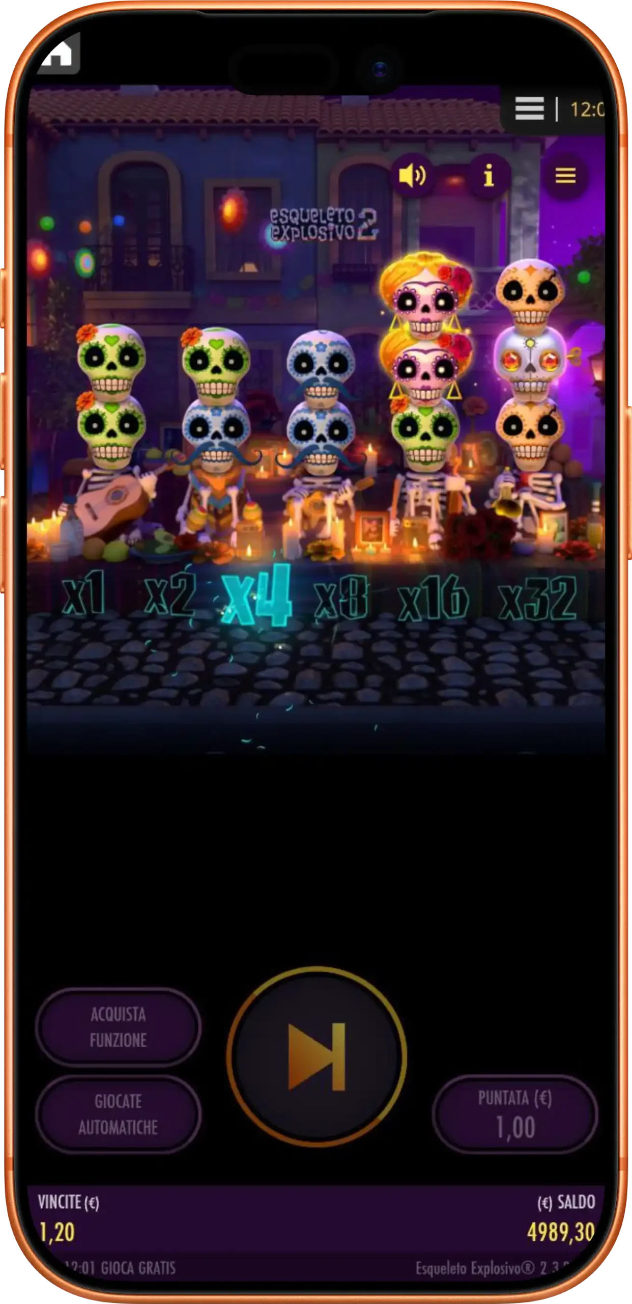 La slot Esqueleto Explosivo 2 online è stata sviluppata dallo studio Thunderkick. È apparsa sul mercato a gennaio 2020. Si tratta del seguito della celebre macchina dedicata ai teschi-mariachi cantanti. L’intervallo di puntata è adatto a tutti i giocatori — da €0,10 a €100 per giro. Le vincite si formano attraverso combinazioni a cluster e sequenze a cascata.